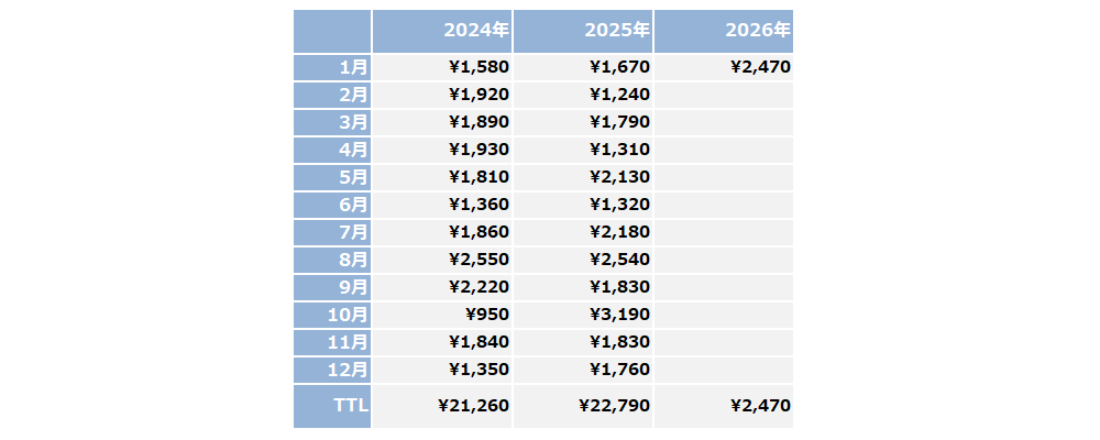 - 総利益 ¥46,520,000(ラージ1枚)